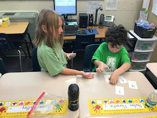 Madelyn made a sweet sign for our supply pick-up! :) Elizabeth balancing her number sentences! :) Grace measured her Lego bi...